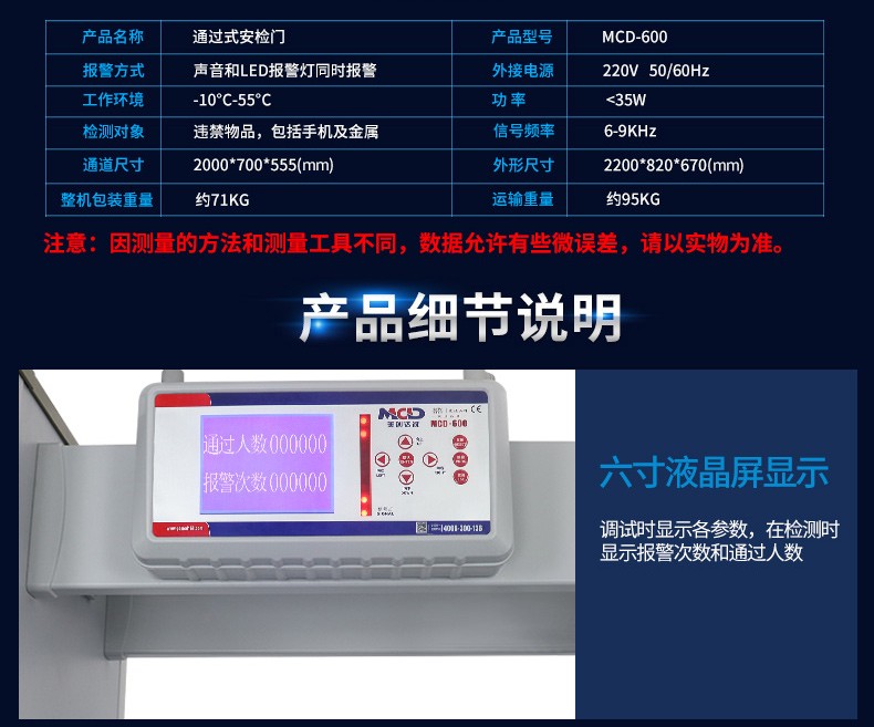 MCD-200MCD-500MCD-100AMCD-300MCD-600MCD-800安檢門MCD-500C安檢門便攜式安檢門測(cè)溫安檢門MCD-300RMCD-600RMCD-600B/CMCD-9000MCD-600B/C29寸大屏