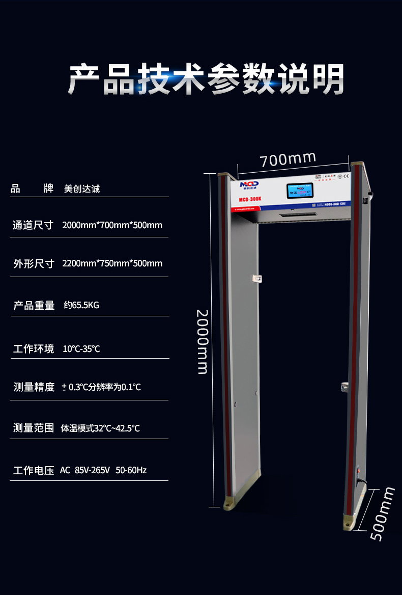 美創達誠廠家人體測溫門通過式精準安檢門測溫批發MCD-300K
