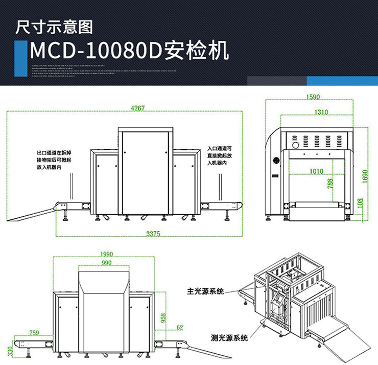 雙光源安檢機車站高鐵站行李包裹檢查機,快遞物流行業使用安檢機MCD-10080