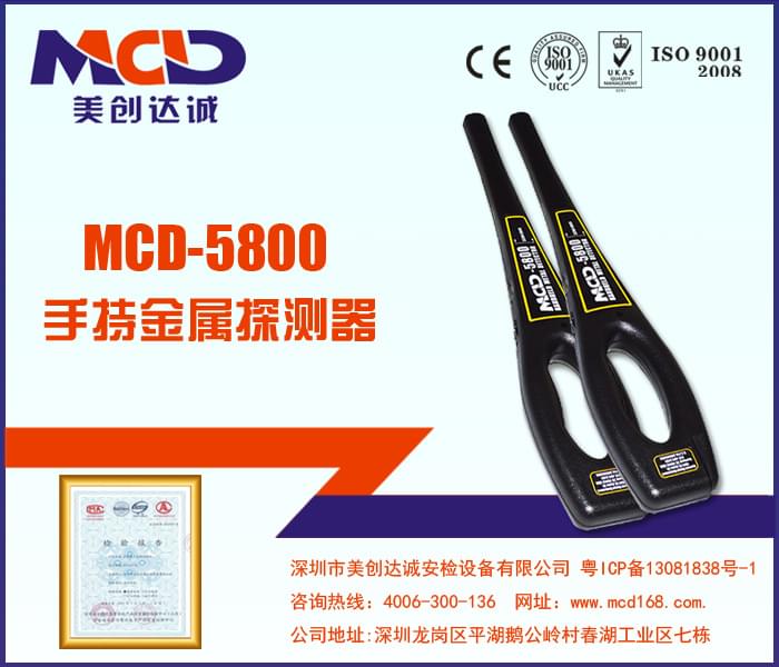 MCD-5800手持金屬探測器,掃描棒。美創達誠獨具匠心的設計大作。掃描棒結構輕巧,靈敏度高,有聲及無聲振動報警提供出色的性能以及操作功能,是在其他手持探測器中沒有發現的,此掃描棒使用先進的技術電路,允許即時操作,提供設置以及任何操作調整。性能穩定。360度靈敏度探測功能,探測區域無死角,即使是在超級掃描棒的前端處也是非常有效的,極易探測出針頭甚至更小的金屬物體