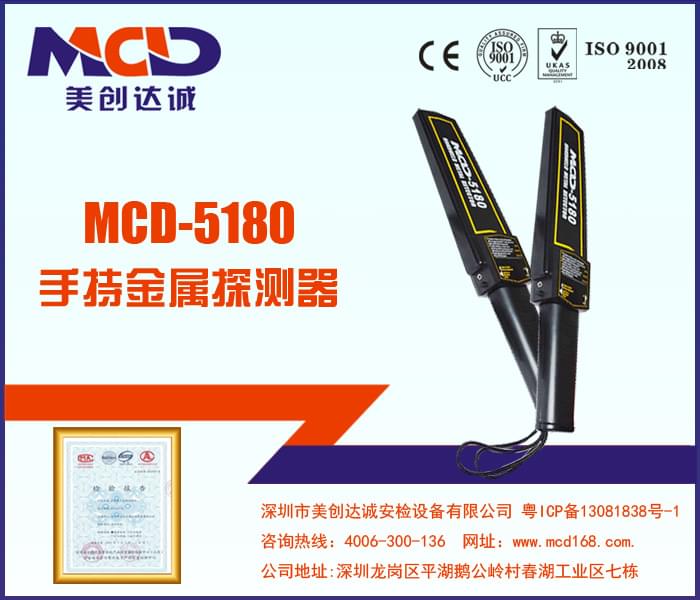 MCD-5180手持式超級金屬掃描儀。這是我公司開發的一款設計獨特的手持式金屬探測器,全部采用進口優質元器件制作,探測精度高、操作簡單、外形輕穎美觀,聲音清脆響亮,具有開機與探測報警燈和聲光自動轉換功能,并帶有快捷復位鍵,輕按復位按鈕能使探測器復位回到常規的等待探測狀態,在出現虛假報警或 探測環境的溫度有快速變化時尤為有用。特別適用于對探測靈敏度要求極高的公共場所或工廠使用,機場、公安、邊防、法院、監獄、體育場館、會展場館、娛樂場所、車站碼頭等行業的安全檢查,貴重金屬制造加工企業如:首飾、電子、五金、汽車等企業的防偷盜檢查。