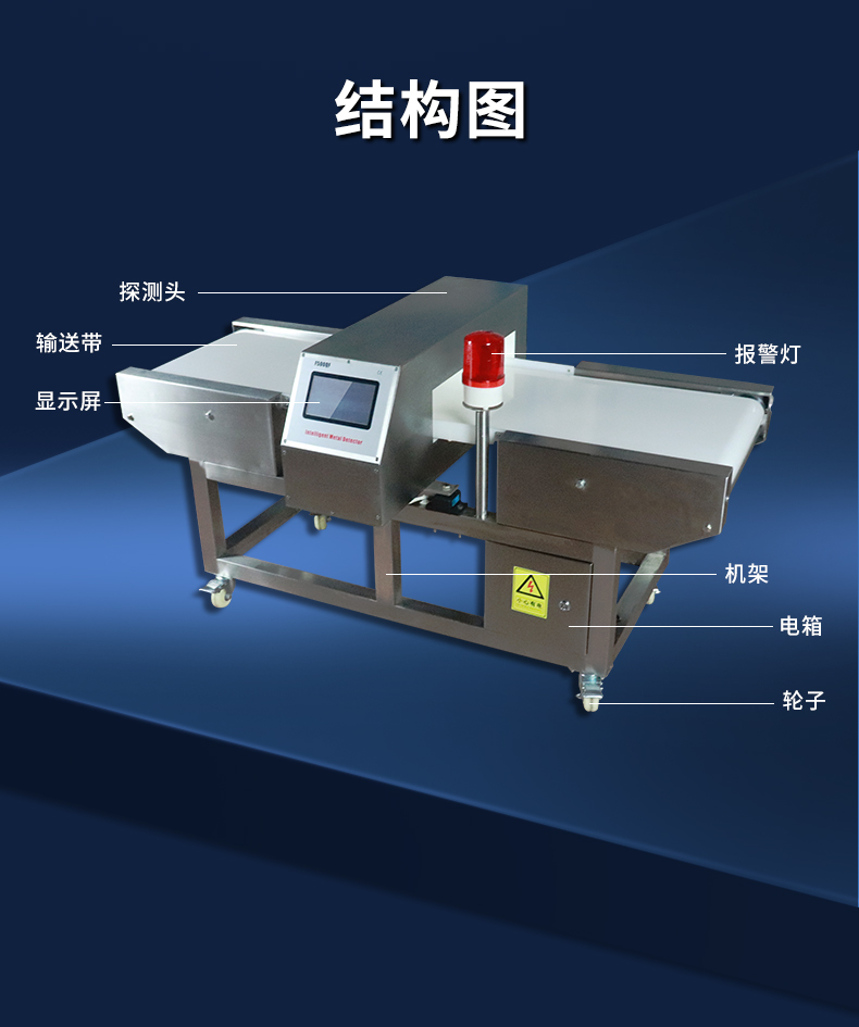 6、檢測到微量金屬時,聲、光、儀表同時報警,不合格產(chǎn)品自動返回到停止狀態(tài)和排除裝置控制分離。
